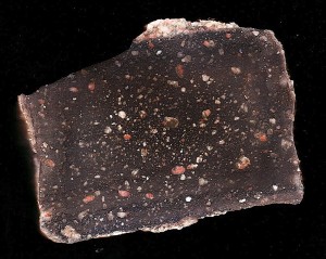 Fig. 42. Impact melt rock from the Zhamanshin impact structure in Kazakhstan. The Pleistocene 14 km-diameter structure is estimated to be about 900,000 years old.