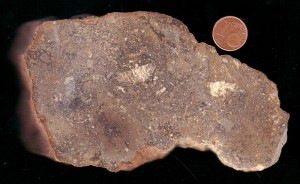 Fig. 34. Impact melt rock from the 11 km-diameter highly eroded Dhala impact structure in India. Dhala, with an estimated age of about 2,000 Ma, is the third oldest terrestrial impact structure.