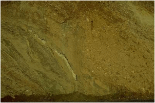 Fig. 2. Patches of silicate melt in Lower Tertiary claystones. Barrachina megabreccia.