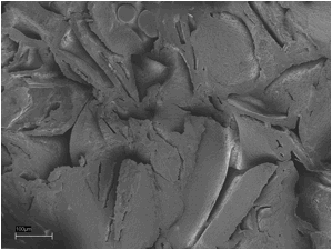 Fig. 8. The silicate melt rock under the SEM. 1 µm scale bar. SEM Images: ZEISS.
