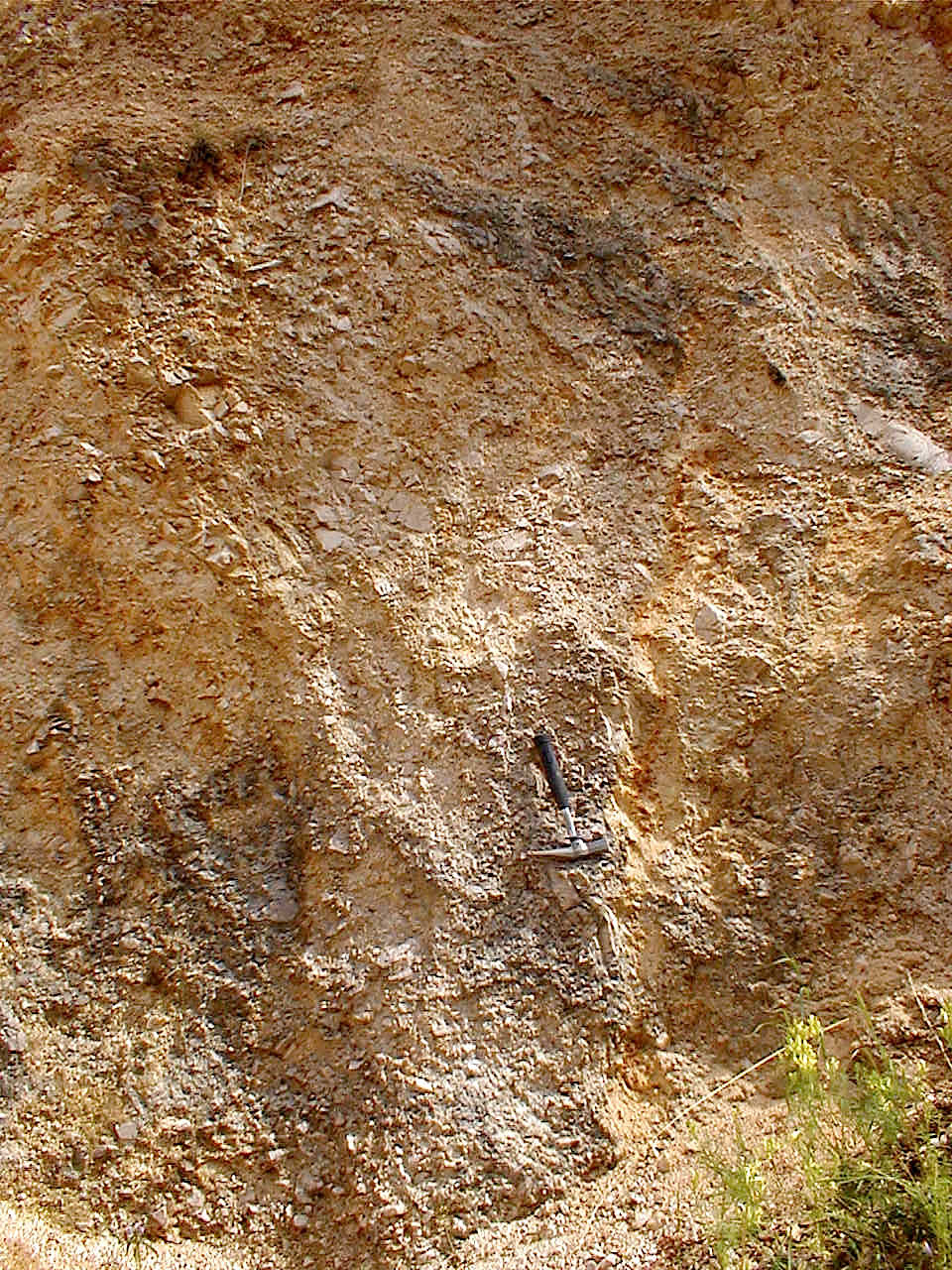 Fig. 2. Bunte (= multicolored) breccia ejecta on top of Malmian limestones. Gundelsheim quarry; different view.